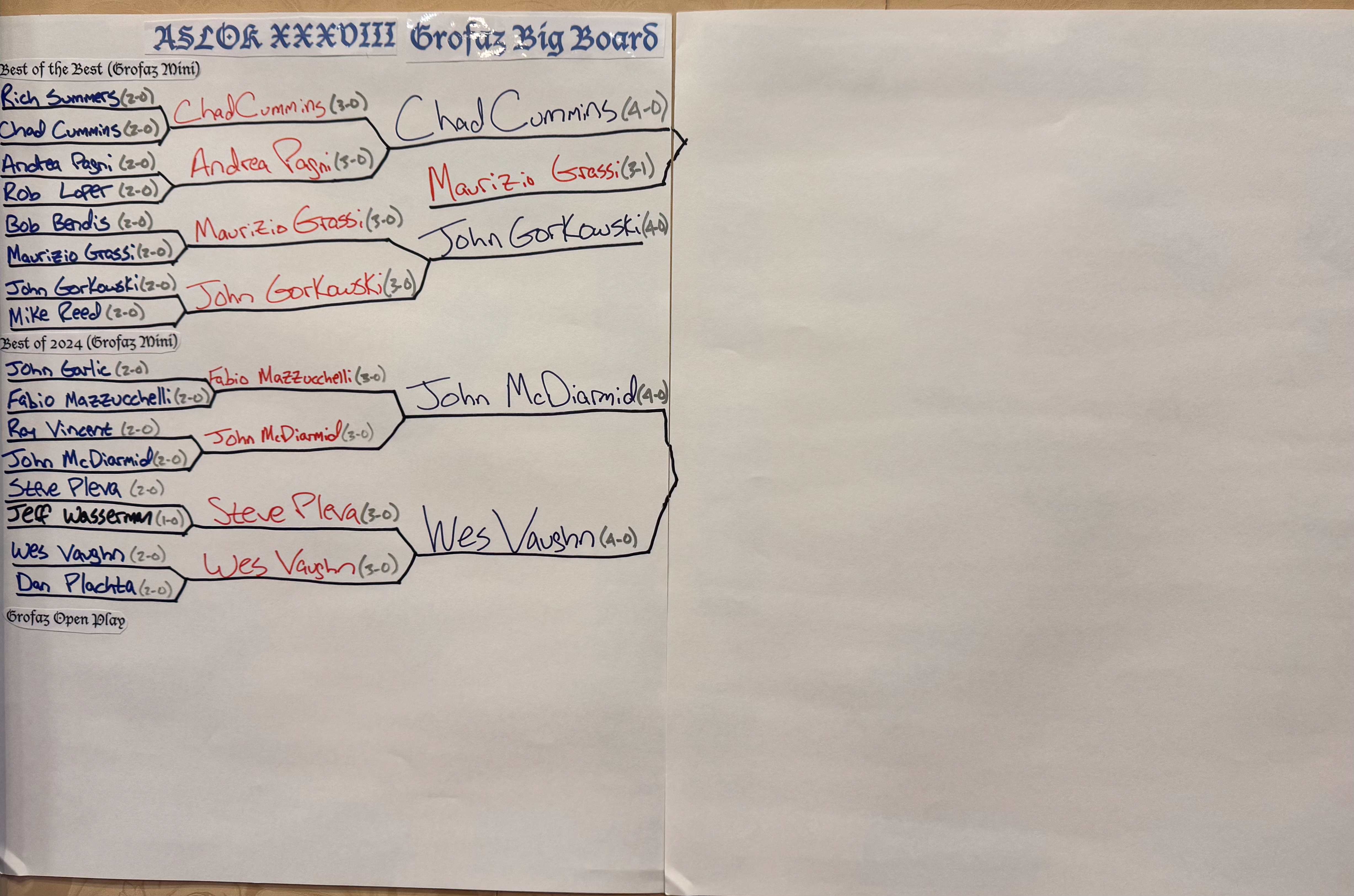 Best of the Best (Grofaz): Maurizio Grassi overcomes Chad Cummins to become the first player to ever win a Grofaz mini after losing a Semifinal matchup as John Gorkowski had to leave the cardboard battlefield early
