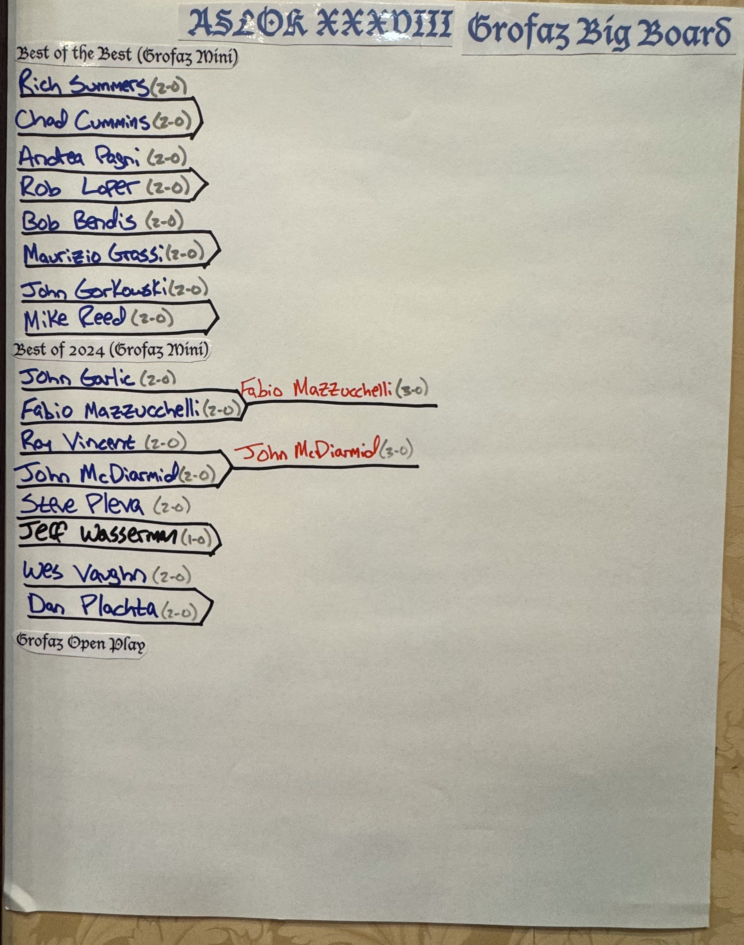 At the moment there are no one vying from the open play side of the Grofaz bracket but I guess that could change depending on how things go. But it is looking like a 6-0 Grofaz is the most likely thing this year...